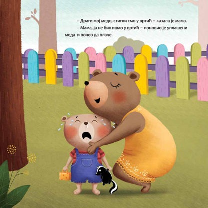 Slikovnica „Medu je strah da ostane u vrtiću“ je terapeutska priča koja se bavi problemom straha i separacijske anksioznosti kod dece, tj straha od odvajanja od roditelja.